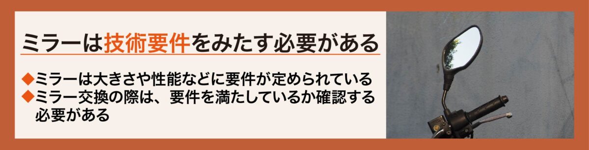 では、原付二種以上の排気量を持つバイクは、単に両側にミラーを付けていれば違反ではないのでしょうか。