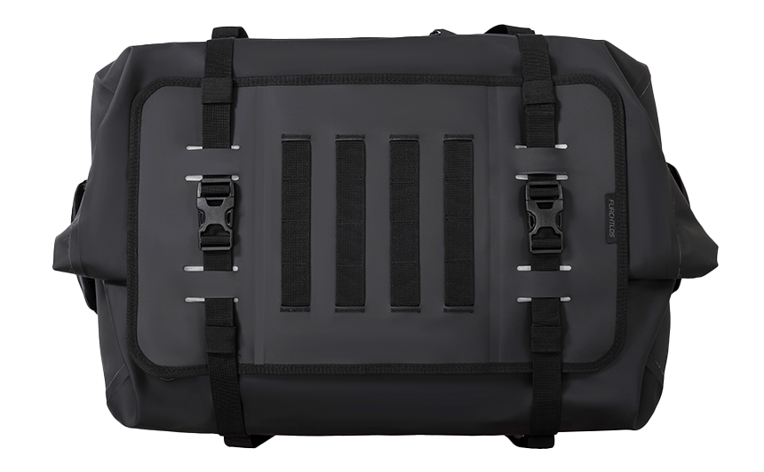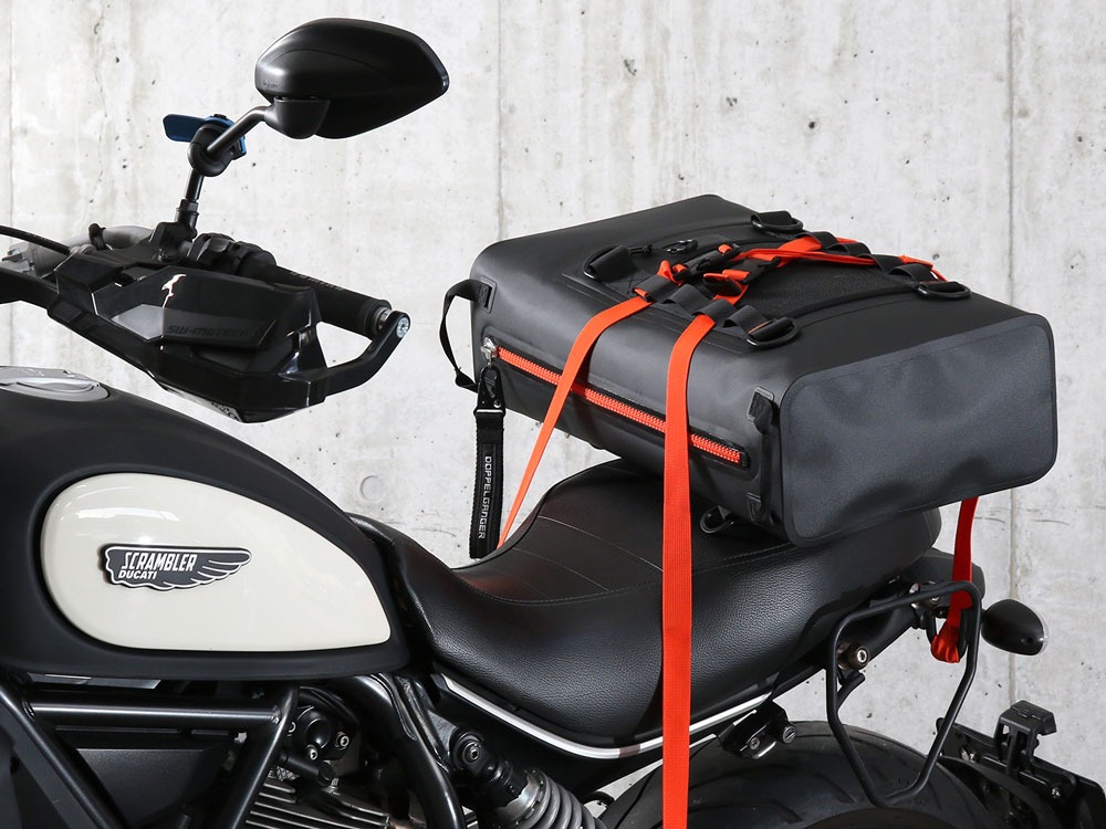 防水・防塵性能IP66を備えた大容量50Lのダッフルバッグ。手持ちのストラップだけでなく、バッグ底面にパッド入りショルダーストラップが格納されており、バックパックのように背負って持ち運べるのが特徴です。50Lと大容量なのでロングツーリングはもちろん、キャンプ道具や着替えをまとめて運びたいツーリングなど、「濡らしたくない」「ガッツリ積みたい」を両立したい人におすすめです。