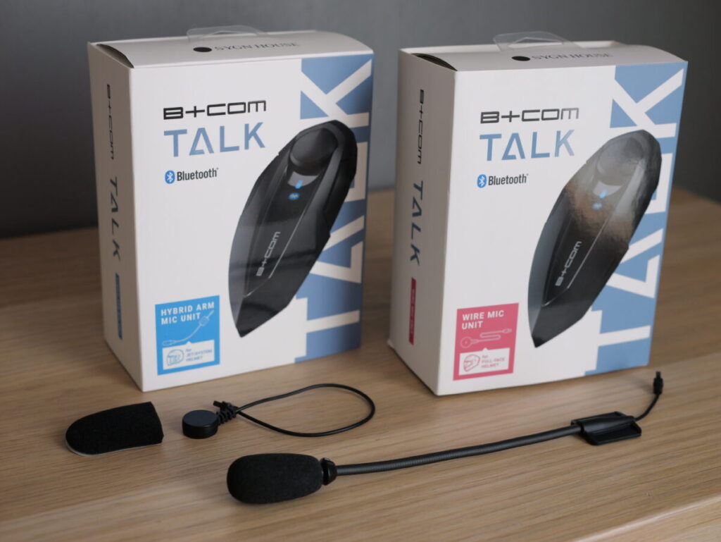 また、自身のヘルメットに合わせて2種類のマイクタイプから選べる2パッケージとなっており、マイク以外の同梱物はいずれも同じ。