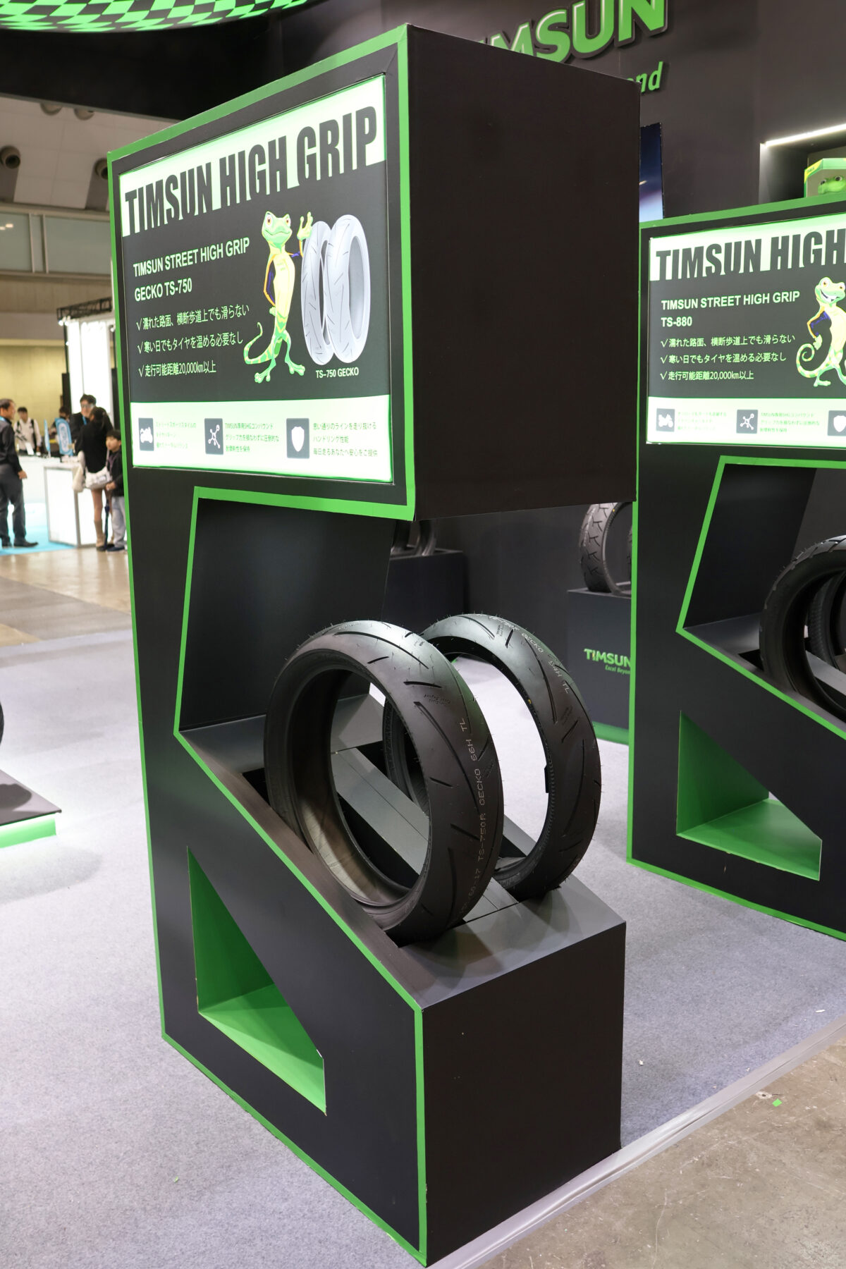 そんなTIMSUNブースでは豊富なラインナップを展示していたほか、プレミアムタイヤである「ストリートハイグリップシリーズ」の新製品が3種類出展された。