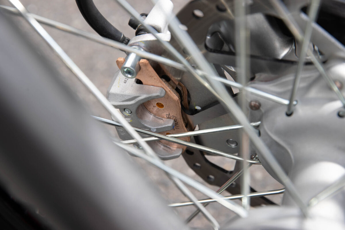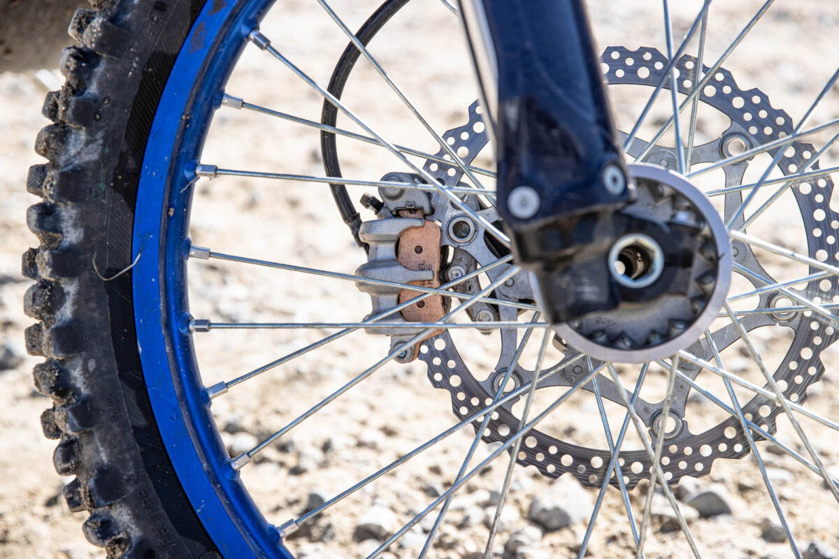 ジグラムパッド ダートシンタードに交換すると、わずかなタッチでも制動力が格段に向上しました。こちらは、YZ250FXで純正とダートシンタードを比較した際には出てこなかった感想です。レーサーのような鋭いブレーキングができるとまでは言いませんが、ライディングに余裕が出て、特に下りのギャップが連続するような場面では、安心してブレーキングできるようになりました。