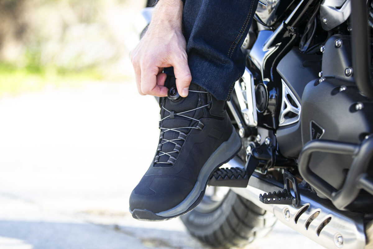 まずハイカットスニーカーやワークブーツのように普段から使えそうなことが大きなポイント。ライディング用シューズとしての機能はしっかりと持たせてありながらも、それほどごつくなく、しかもスマートなカラーリング。