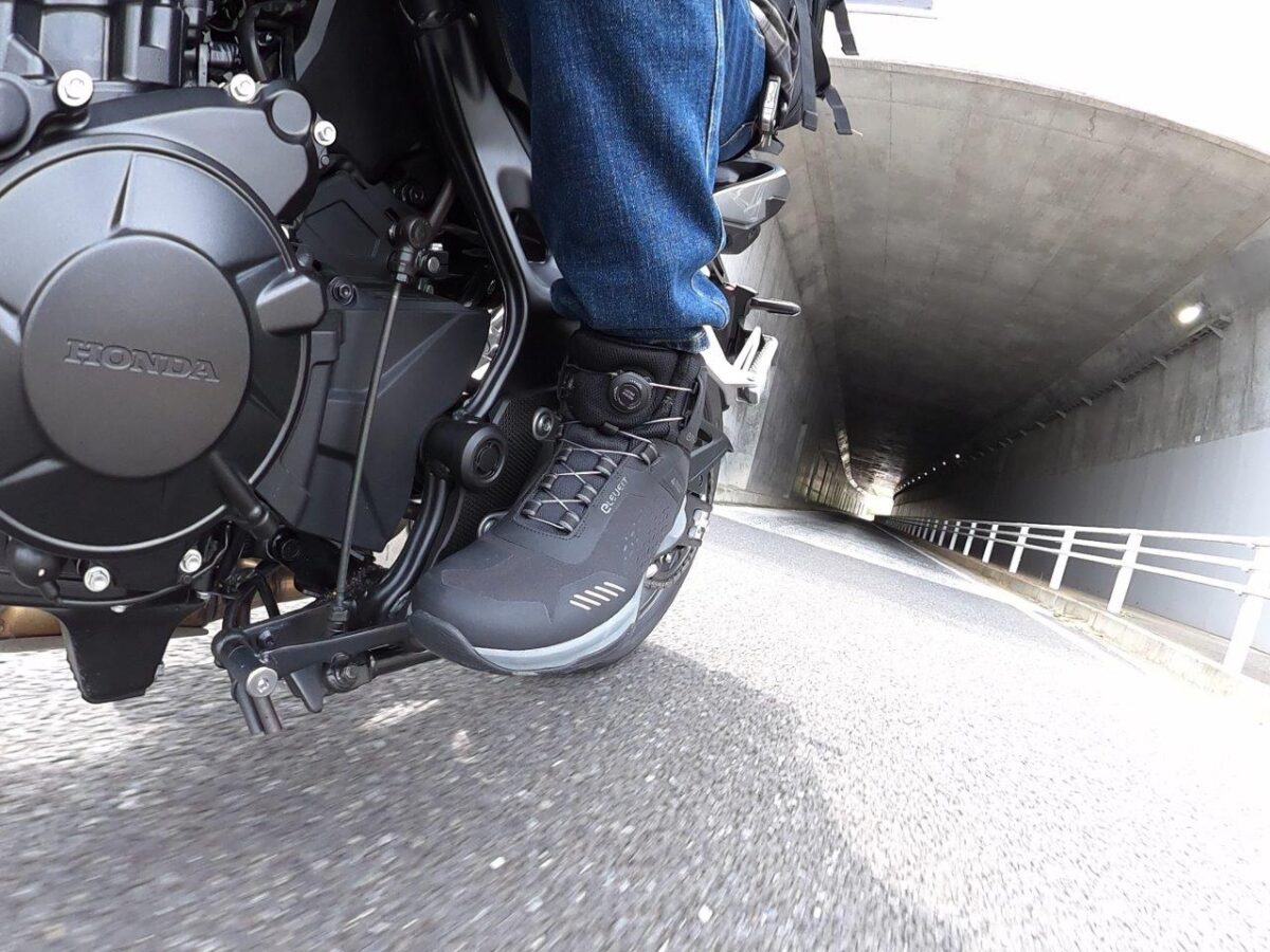 実際に使ってみると、”靴”として良く作られていることが分かります。先述したようにFitgoクロージャ―システムで簡単かつしっかりと足にピッタリフィットさせた後は、歩いてもバイクに乗っても、足のストレスが無いのです。