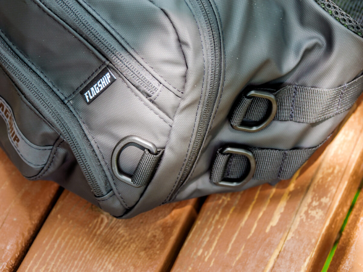 バッグのベルトサイドにはDカンとウェビングテープが付いているので、装備の拡張はもちろん、別途でベルトを用意しておけばバッグを車体に直接取り付けることも可能。