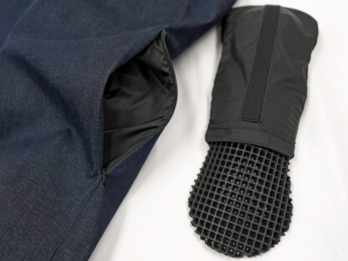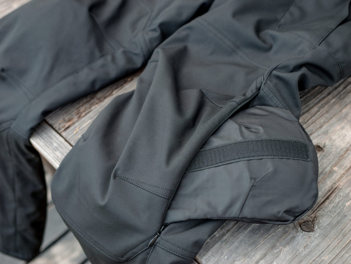 膝と腰には脱着可能なプロテクターが装備されており、膝のプロテクションは位置調整も可能なだけでなく、サイドジップからアクセスしやすいのも嬉しいポイントだ。
