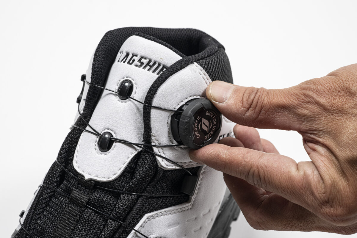 筆者の足は幅広で甲高なので、既存のライディングブーツではサイズ選びに苦労するのですが、ストラテージ・ショートブーツはどんな足の形でも自在にフィットさせられるフレキシブルさを備えているのです。