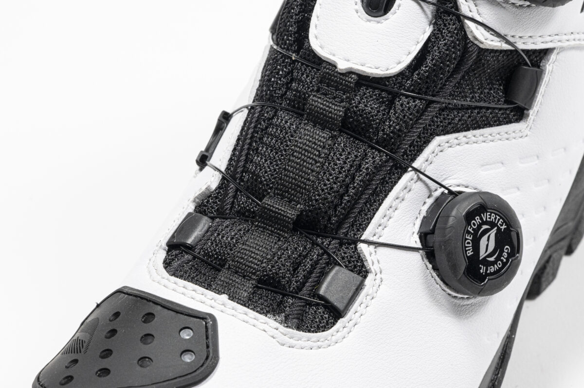 たとえば、足首周辺はきつめに締めて、甲のほうにはゆとりを持たせる、そんなフィッティングも可能なのもこのシステムの良さ。通常のブーツではなかなかできない履き心地を自分で作り出せるのは大きなメリットです。今回テストではのべ2500km程度を走行しました。真夏から秋口まで、合わせるパンツやソックスが変化する状況でも、ワンサイズのブーツで履き心地を変化させられるつくりはとても便利だと感じます。