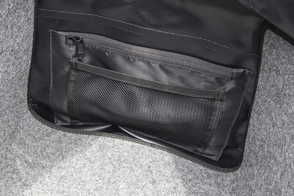 そして、もうひとつ紹介したいのが機能性です!うっすらお気づきの方もいると思いますが、このバッグはIP66の防水性能を有しています。このIP66とは、防塵・防水性能の等級を表す国際規格(IEC規格)となっていて、完全に粉塵が入らない防塵性能と、あらゆる方向からの強い水流にも耐えられる防水性能を誇っています。だから悪天候でのツーリングでも荷物を濡らすことなくしっかり守ってくれるのです。しかも乾くのも早いので、お手入れしやすいのもポイント!
