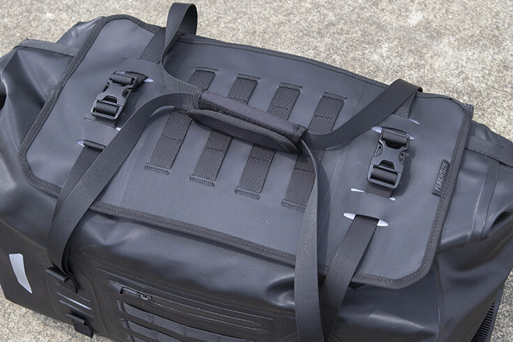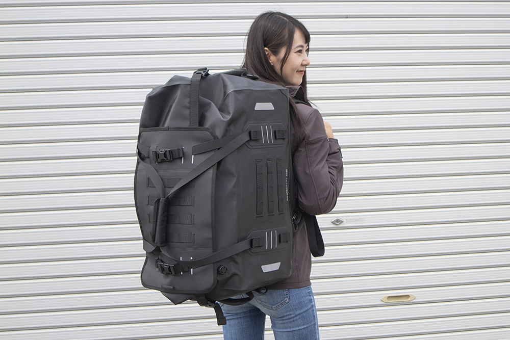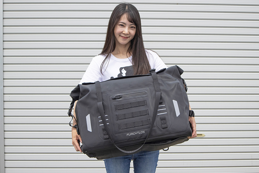 その中でも50Lという大容量を発揮するシートバッグ「EVEREST Duffel Bag」を、バイカーモデルのときひろみがレビューしていきます。