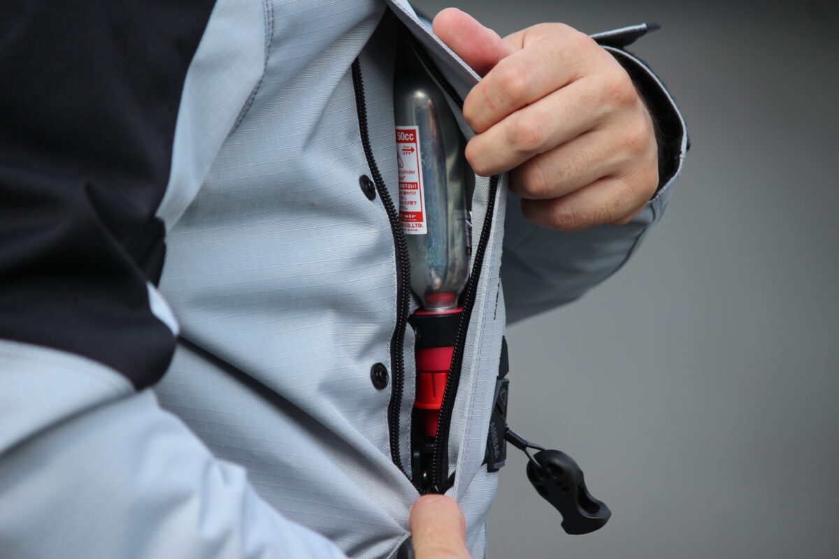 また、このエアバッグシステムの優秀な所は、作動してエアバッグが開いたとしても、ジャケットやベストの生地が破損していなければ収納して再利用できるところだ。