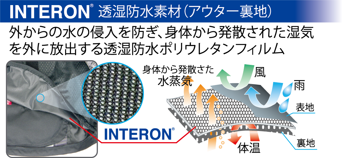 中布:INTERON透湿防水フィルム (ポリエステル、ポリウレタン)