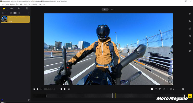 撮影した動画データはスマホのアプリかPCにインストールできるInsta360 STUDIOというソフトで画角を調整することが可能です。