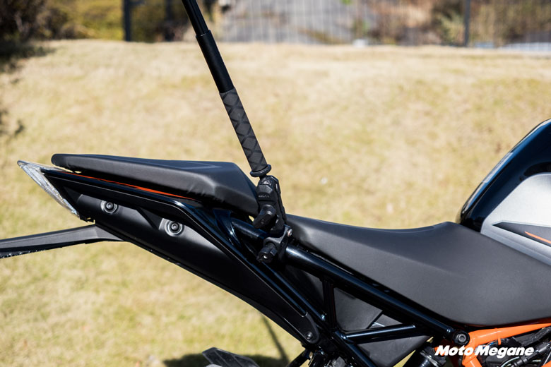 今回はヘビーデューティークローマウントと見えない自撮り棒しか手元になかったので、390dukeのシートフレームにマウントして、可能な限り高い位置から撮影してみました。