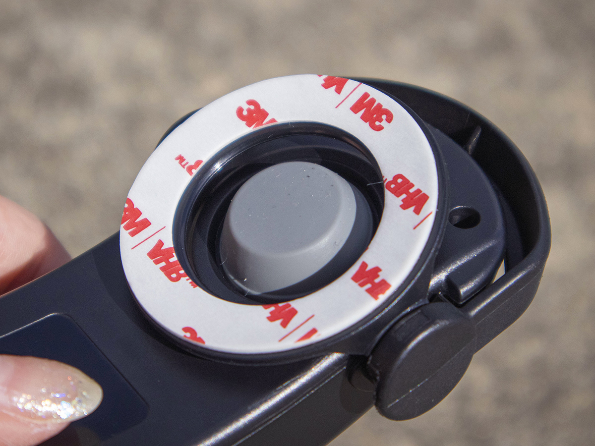 3M社の強力な両面テープが付属しているので、しっかりとヘルメットに固定できます。