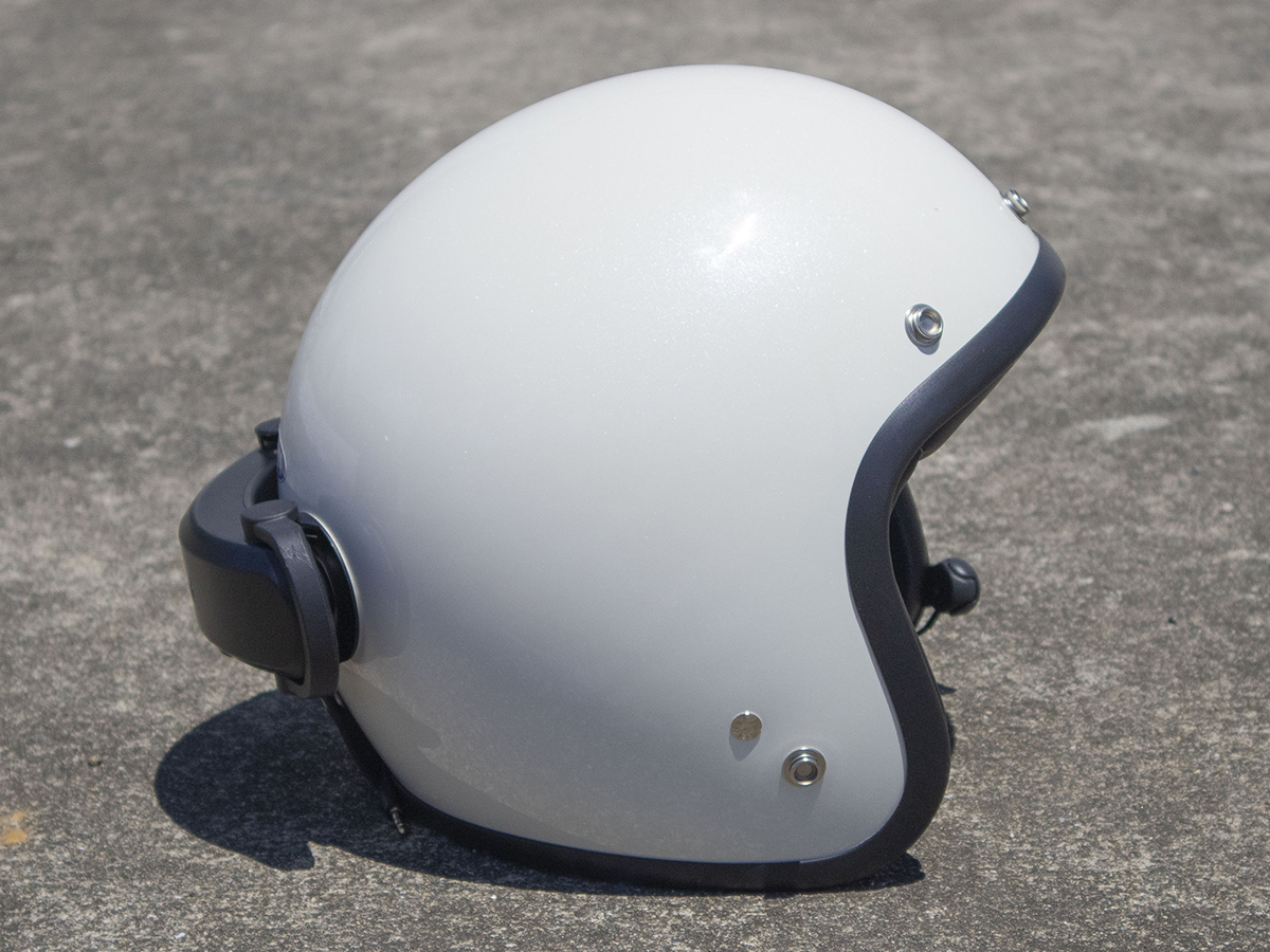 オープンフェイスヘルメットは、ヘルメット自体もシンプルなので、少しアドサウンドの存在感が目立つかなという印象です。でもヘルメットにグラフィックが施されていたり、オフホワイトのaddSoundなら、雰囲気がガラリと変わりそう。組み合わせの幅が広がるのは楽しいですね!