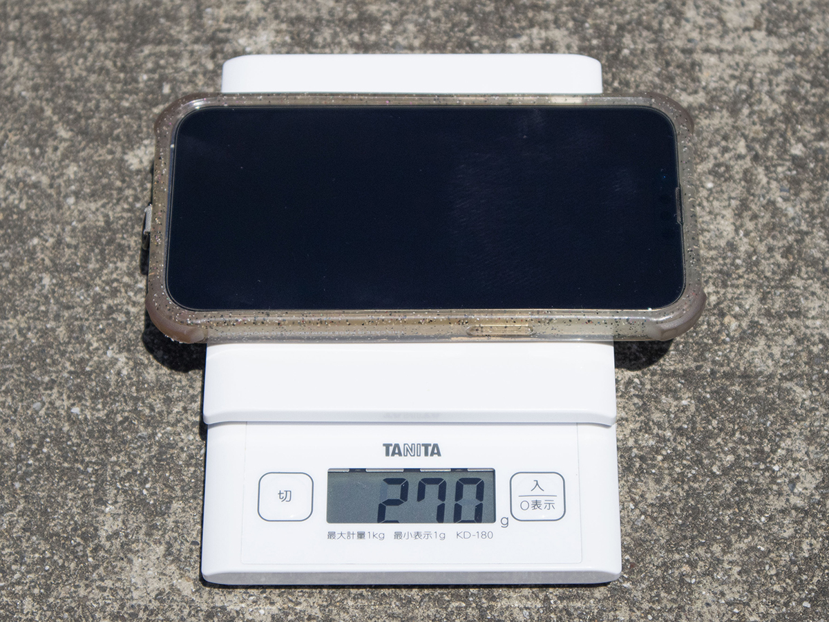 筆者のiPhone13 Pro(ケース込み)は270g。addSoundのほうがはるかに軽いですね…。