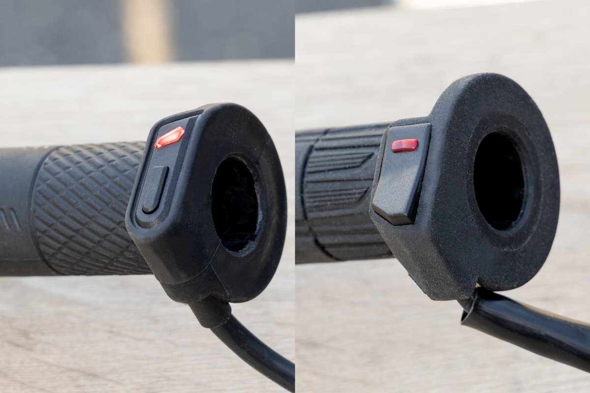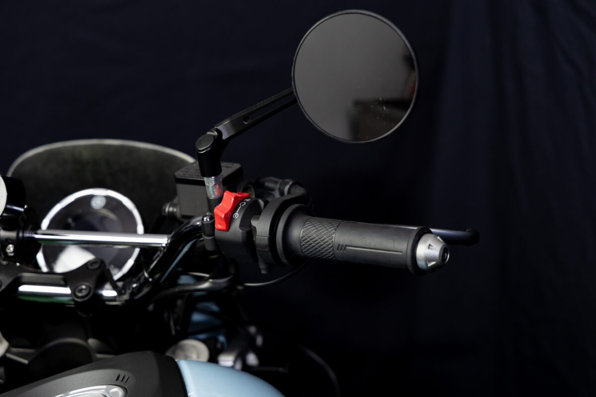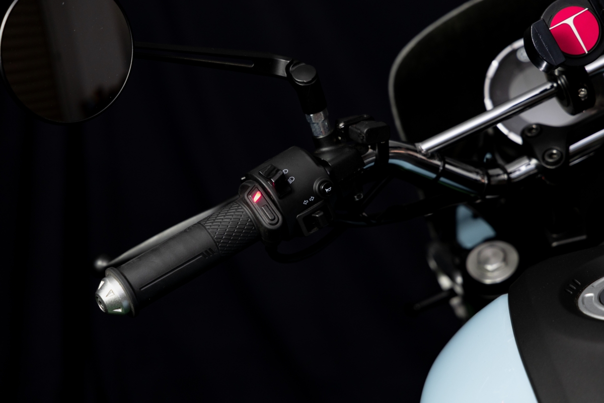 「GH11」のスイッチボタンは、バイクのスイッチボックスと隣接して設置。車体との一体感が増して見えるデザインのよさも特徴。