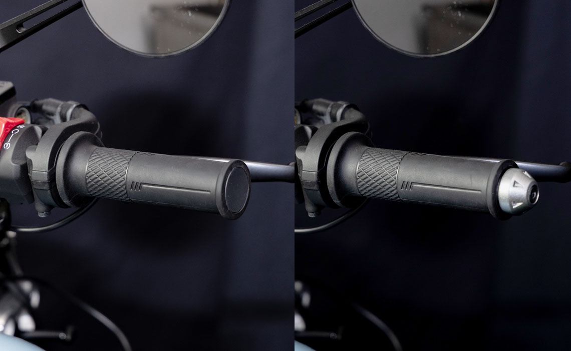 付属のバーエンドキャップを外せば、純正や各種バーエンドの装着にも対応可能。