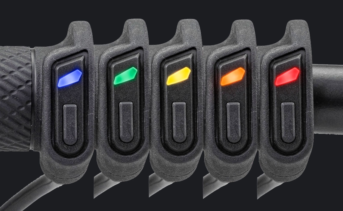 「GH11」はスイッチボタンを押すことでハンドルから手を放さずに、レベル1からレベル5まで5段階に温度調整ができる。そして、各レベルに合わせてLEDインジケーターが、ブルー→グリーン→イエロー→オレンジ→レッドと変色する