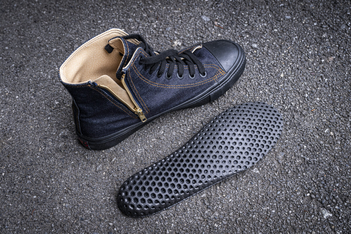 また、もうひとつの特徴としてはインソールを採用している点が挙げられます。最近ではスニーカーでも取り外し可能なインソールを備えているものも多いのですが、「ハイパー V®︎ デニム スニーカー」ではオリジナルのメッシュインソールを採用。