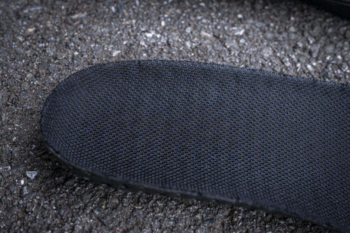 通気性とクッション性を両立する細かなメッシュ加工がほどこされたインソールは、夏場でも蒸れにくく、さらにゴムソールの柔らかさをさらに優しく足に伝える重要な役割を果たしています。