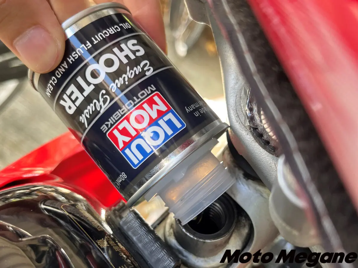 エンジン内に溜まった汚れを取り除くフラッシングオイル。オイルを抜いた状態で使うのではなく「今入っている古いオイルに継ぎ足して使える」というお手軽さが魅力
