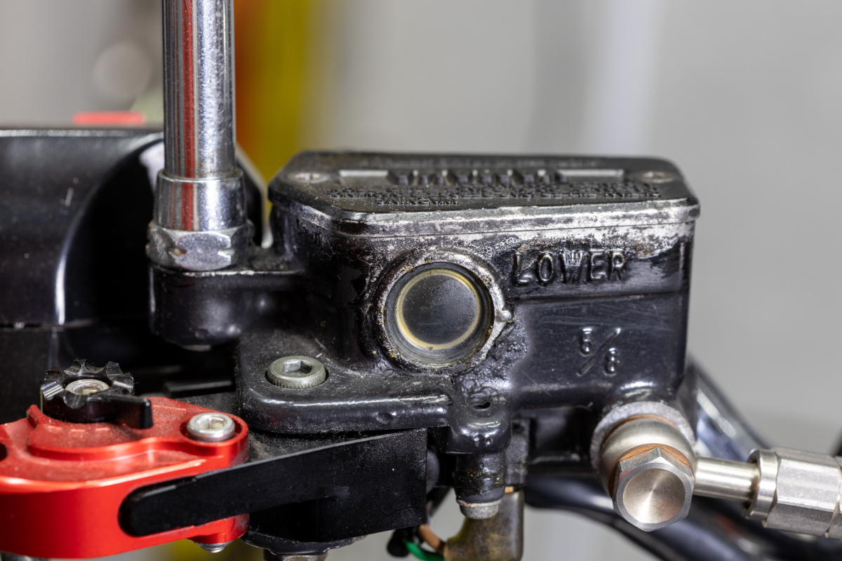 しっかりフルードの色味までわかるので、日常的な点検のためだけにマスターシリンダーの蓋を開ける必要がない。