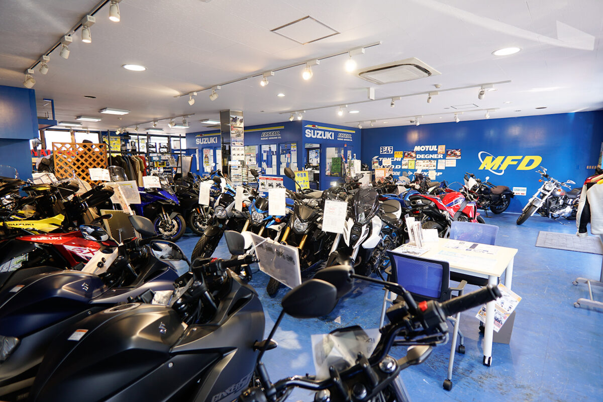 また、MFD東京店だけでなく千葉柏店/埼玉戸田店/横浜店/静岡清水店/名古屋店/大阪店/大阪寝屋川店/神戸店など全国展開で実店舗があって安心、かつ他大手中古車メーカーたちとは一味違う地元のバイクショップのような居心地の良さとバイク好き同士ならではの距離感も特徴のひとつ。