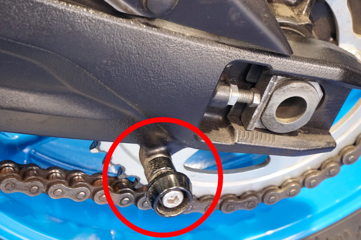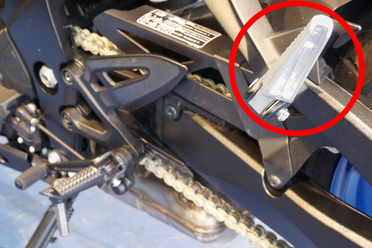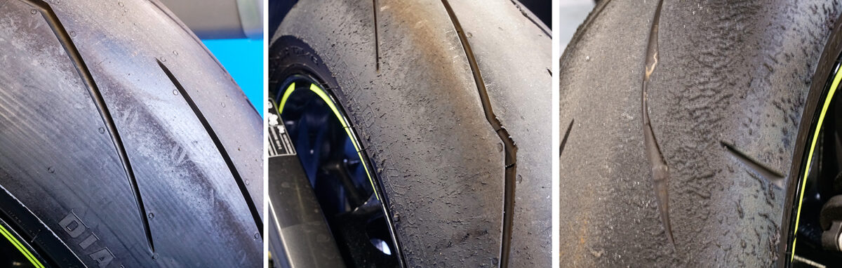 レーシングスタンドをかけるスタンドフックやタンデムステップの損傷は、残っているケースがかなり高い。損傷があれば転倒経験のある車両と分かり、損傷具合で転倒のスケールも想像できる。