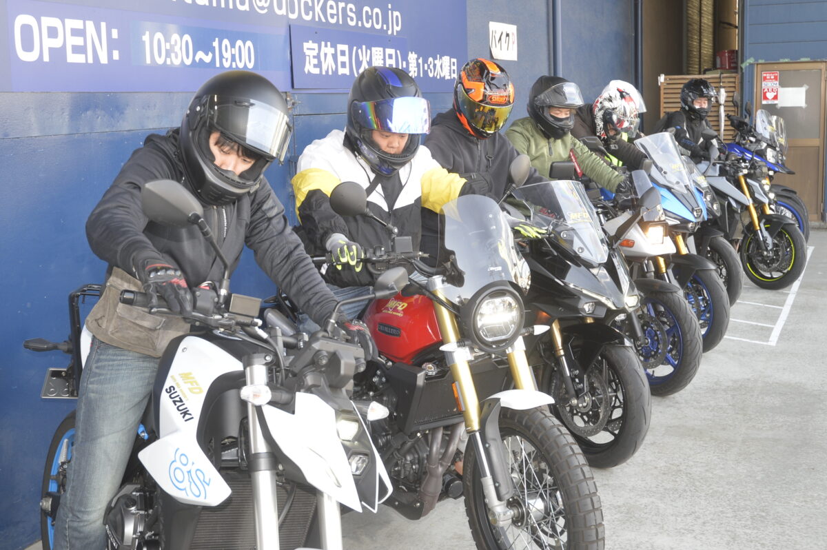 また、2007年より全日本ロードレース選手権GP250クラスに参戦を開始し、現在も全日本JSB1000クラスに参戦中の全日本トップレーサー・渡辺一樹選手も試乗会の先導役として参加することがある。Moto GPへの参戦経験もあり、気さくな性格からファンも多い人気選手だ。長くヨシムラから全日本選手権や鈴鹿8耐に参戦していたこともあり、スズキのトップディーラーであるMFDモトフィールドドッカーズとは、現在も深い絆で結ばれている。単なる試乗会ではなくトップレーサーと一緒に走った記念にもなるはずだ。
