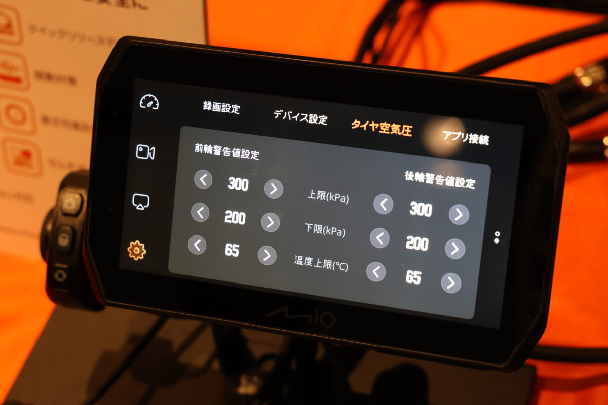 タッチパネルのため、メーター表示の切り替えや画面分割のオン/オフといった設定の変更もしやすい。またタイヤ空気圧やタイヤ内の温度を計り、設定値から外れると警告を出す「タイヤプレッシャーモニター機能」も追加オプションで用意される予定だ。