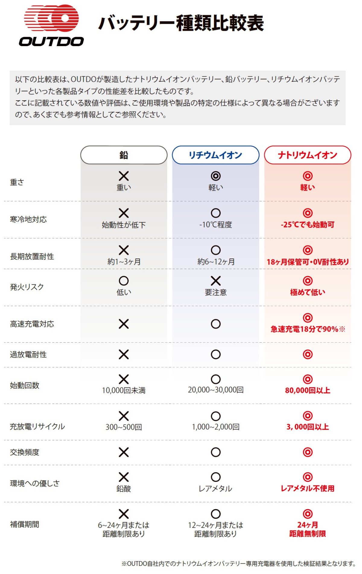 ◆OUTDOナトリウムイオンバッテリー