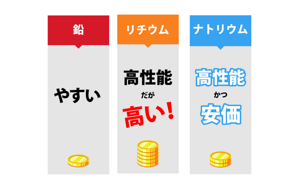 そこで注目したいのが、ナトリウムバッテリーの“コスパの良さ”である。