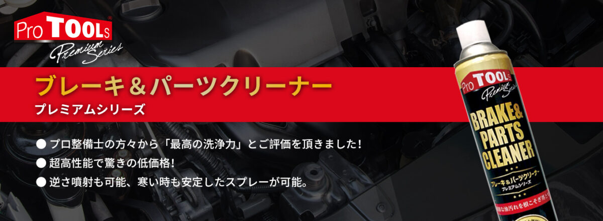 プロツールスのブレーキ&パーツクリーナーはなんと言っても「全国10万人のプロ整備士が使っている!」という間違いない洗浄力が最大の売りで、ベーシックでも十分ですがプレミアムはさらに強力な洗浄力を誇っています!