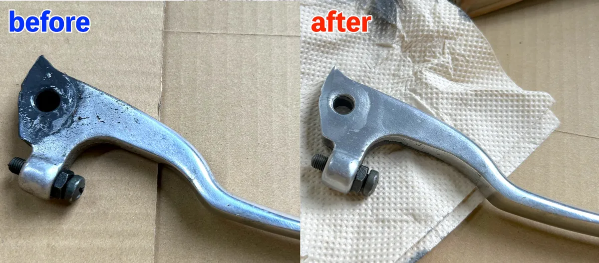 そして、最終的にウエスで拭き取ってみたところ…ほんの2〜3分の作業だったにもかかわらず、僕の想像を遥かに超えて綺麗になったではあ〜りませんか!