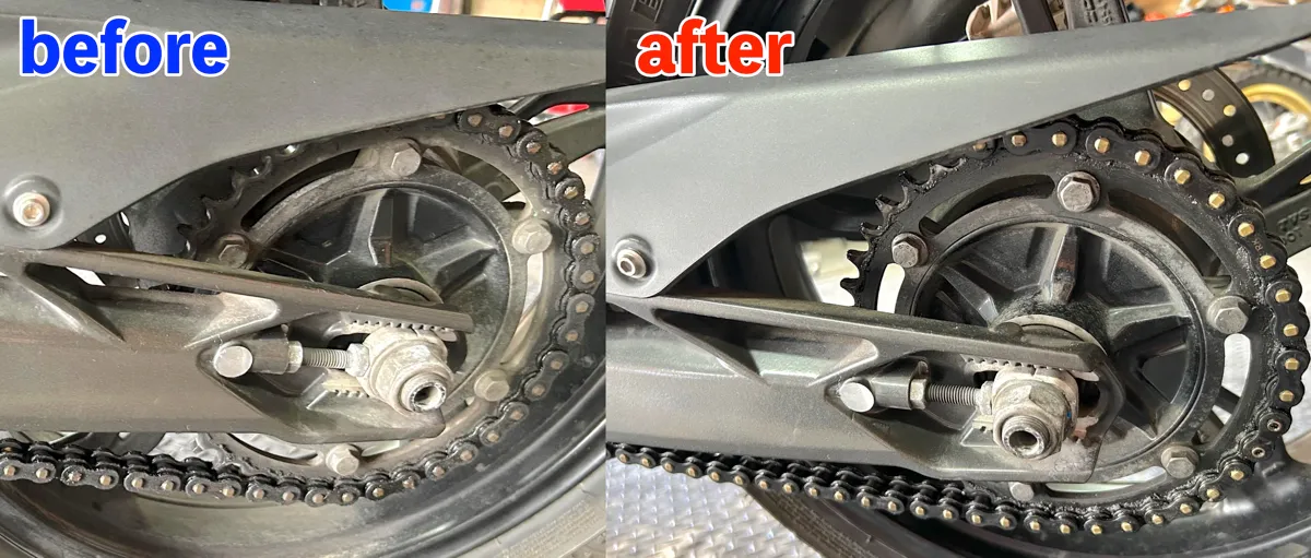 ってことで、奥様バイクのチェーンが見違えるように綺麗になったことをご報告いたします!