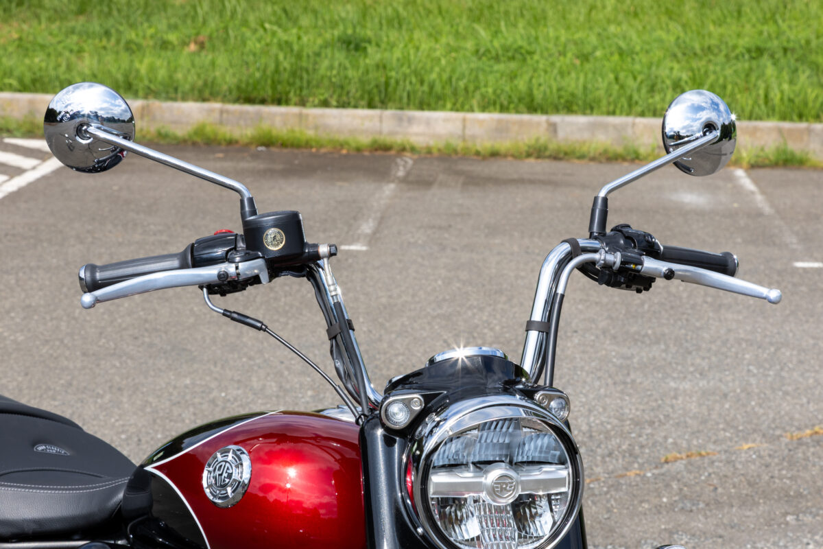 丸目ヘッドライト、ティアドロップタンク、タイヤ側⾯を⽩くデザインしたホワイトウォール‧タイヤなどクラシックとモダンが融合したデザインが特徴的。ファッションとの親和性も高く、どんな服装にも合わせやすいです。 - 快適なライディングポジション