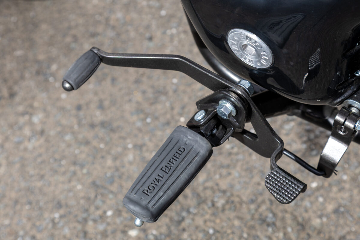CLASSIC 350にも採用されているシーソー式のシフトぺダルは、踏み込む動作のみでシフトアップとシフトダウンが行えます。