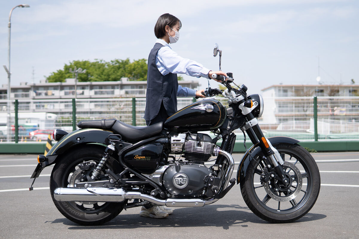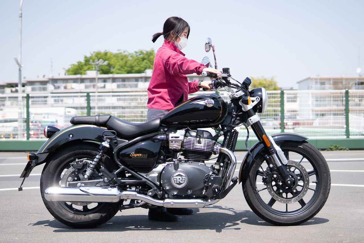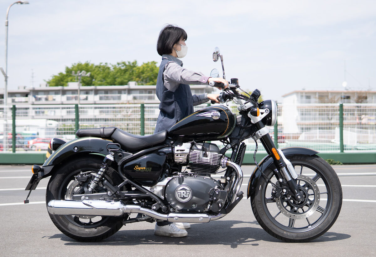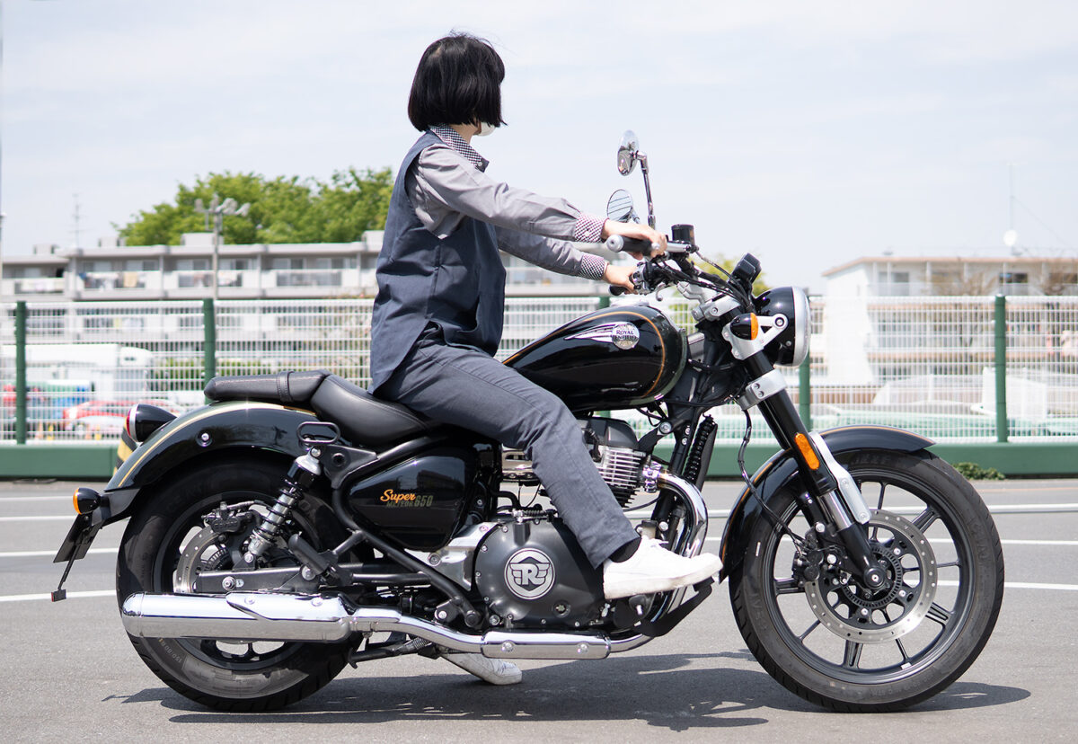 今回、身長別に4人の女子ライダーにロイヤルエンフィールドを象徴するモデルの一つである「スーパーメテオ650」に実際に跨ってもらい、その足着き性を中心にライディングポジションの感想や取り回しのしやすさなどを聞いてみた!