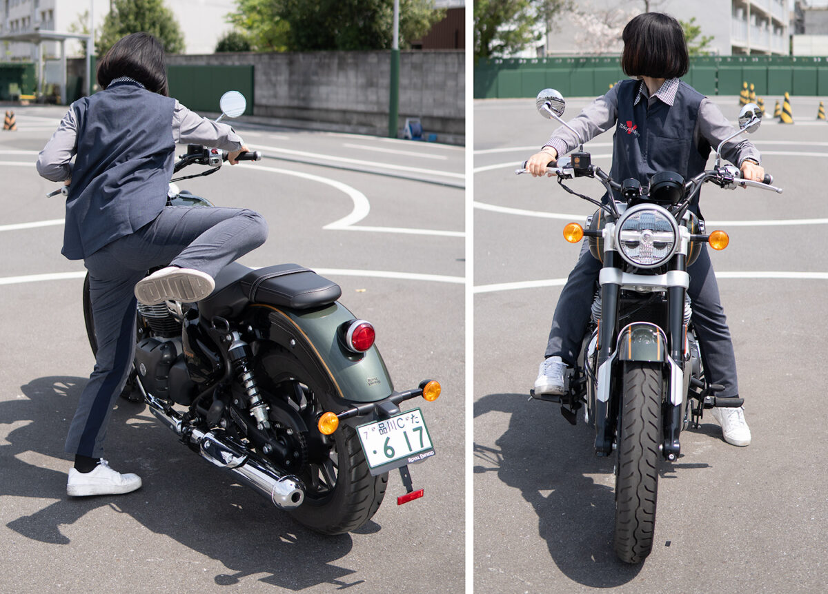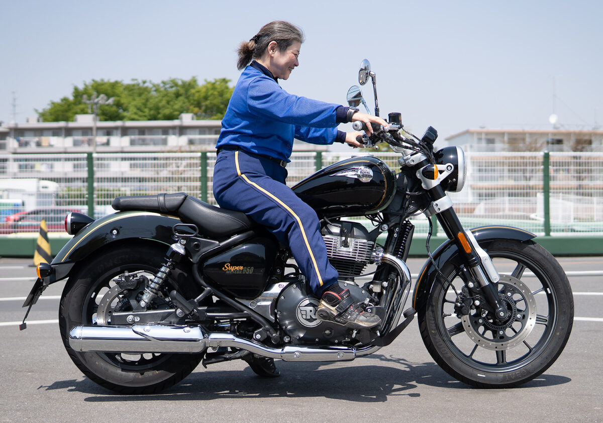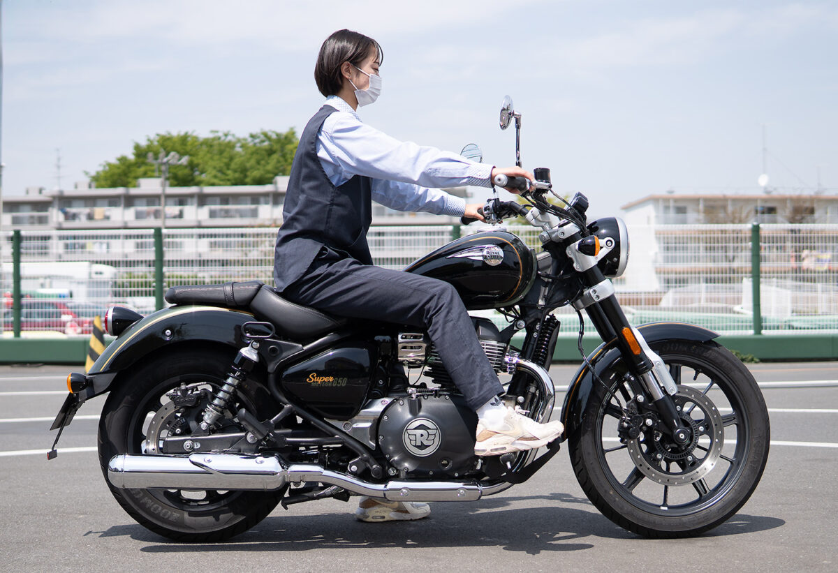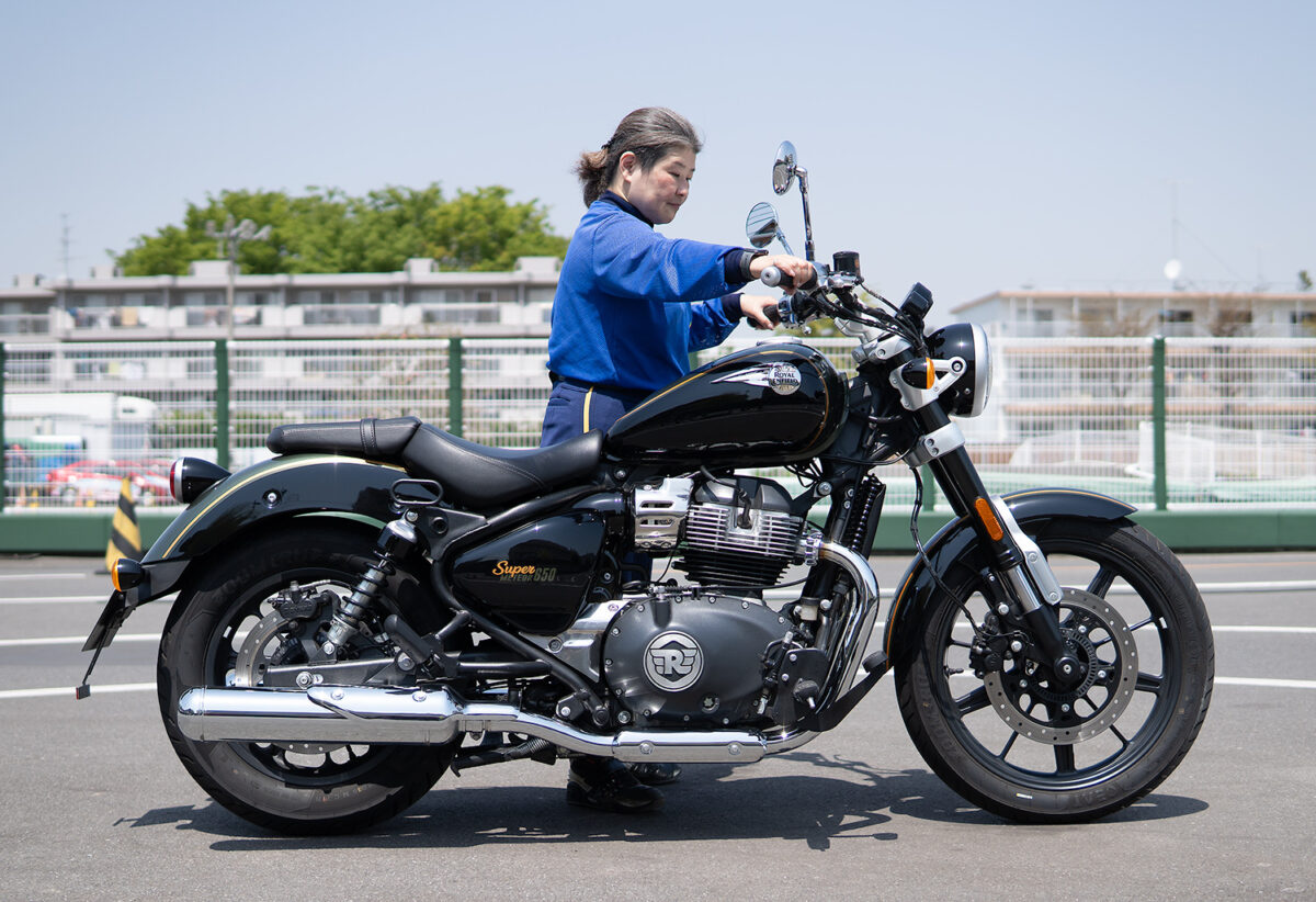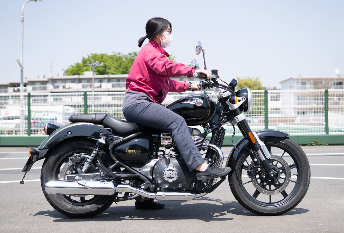 今回、身長別に4人の女子ライダーにロイヤルエンフィールドを象徴するモデルの一つである「スーパーメテオ650」に実際に跨ってもらい、その足着き性を中心にライディングポジションの感想や取り回しのしやすさなどを聞いてみた!