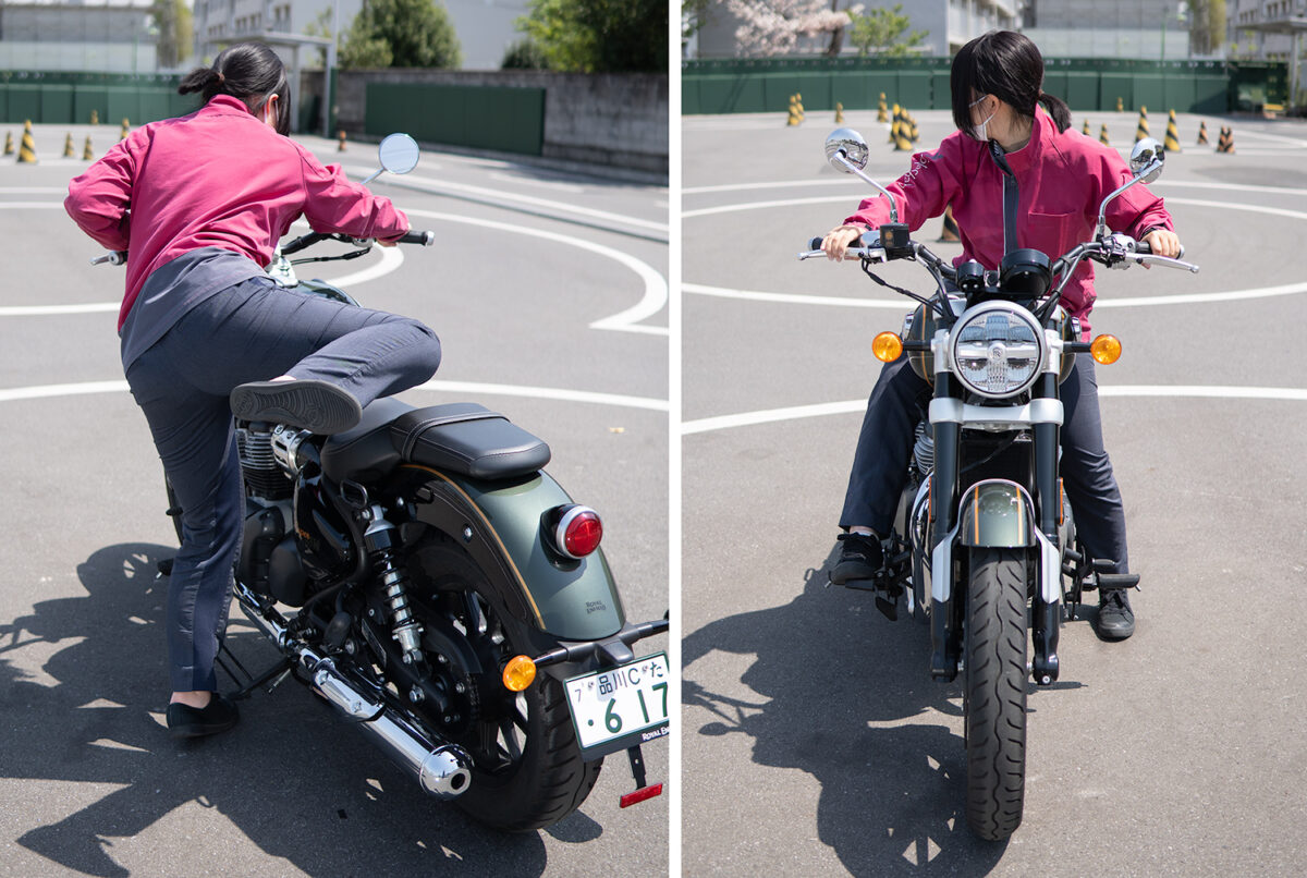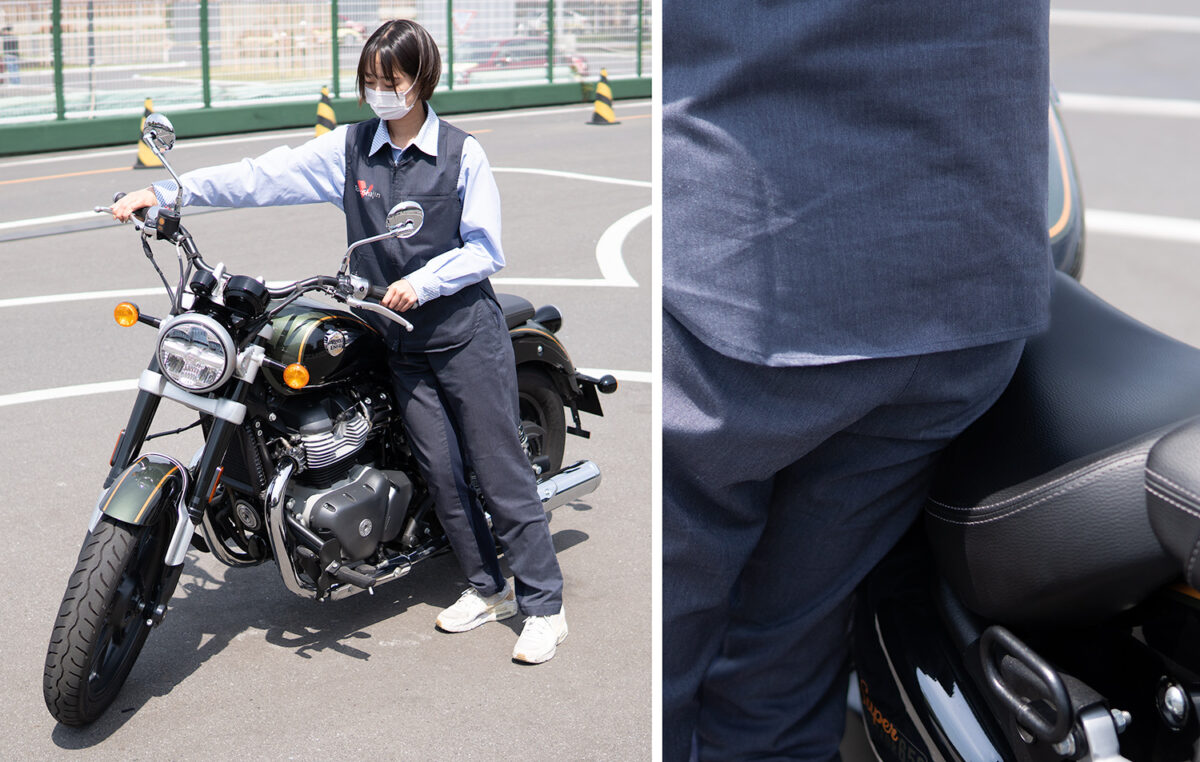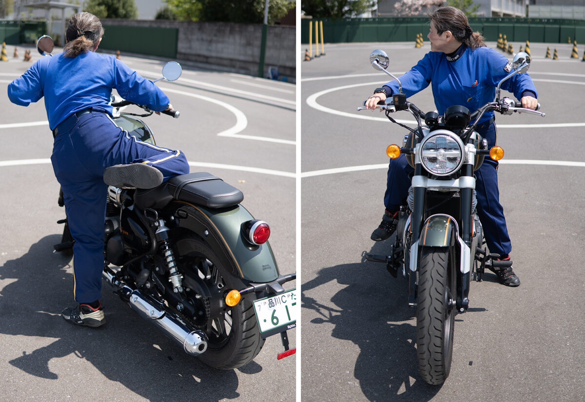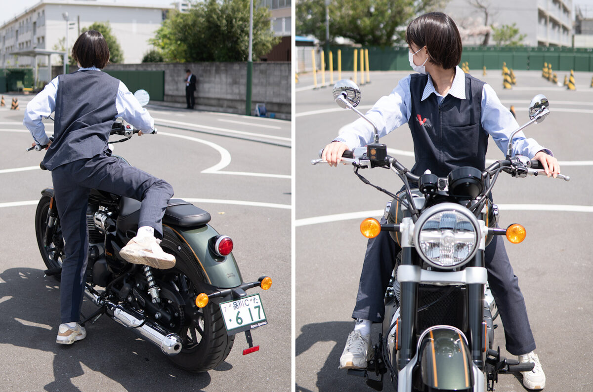 今回、身長別に4人の女子ライダーにロイヤルエンフィールドを象徴するモデルの一つである「スーパーメテオ650」に実際に跨ってもらい、その足着き性を中心にライディングポジションの感想や取り回しのしやすさなどを聞いてみた!