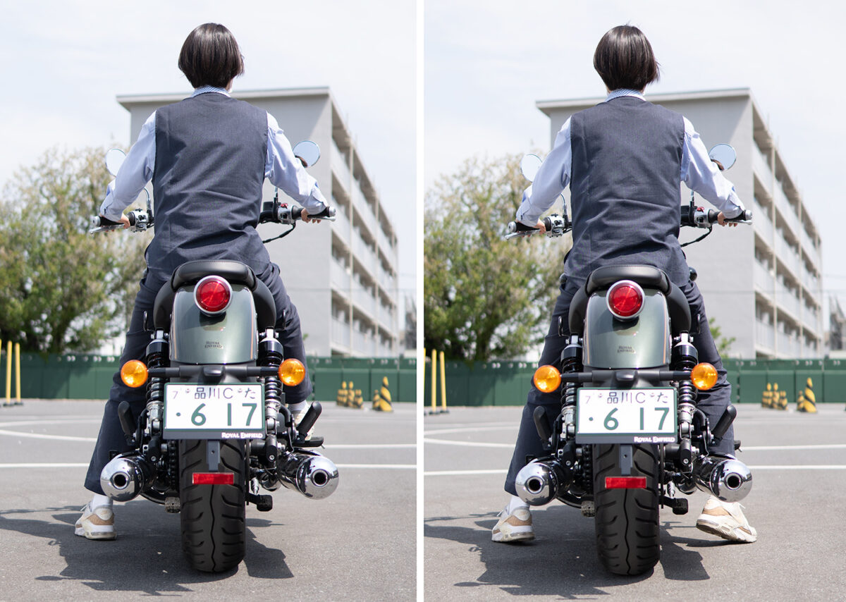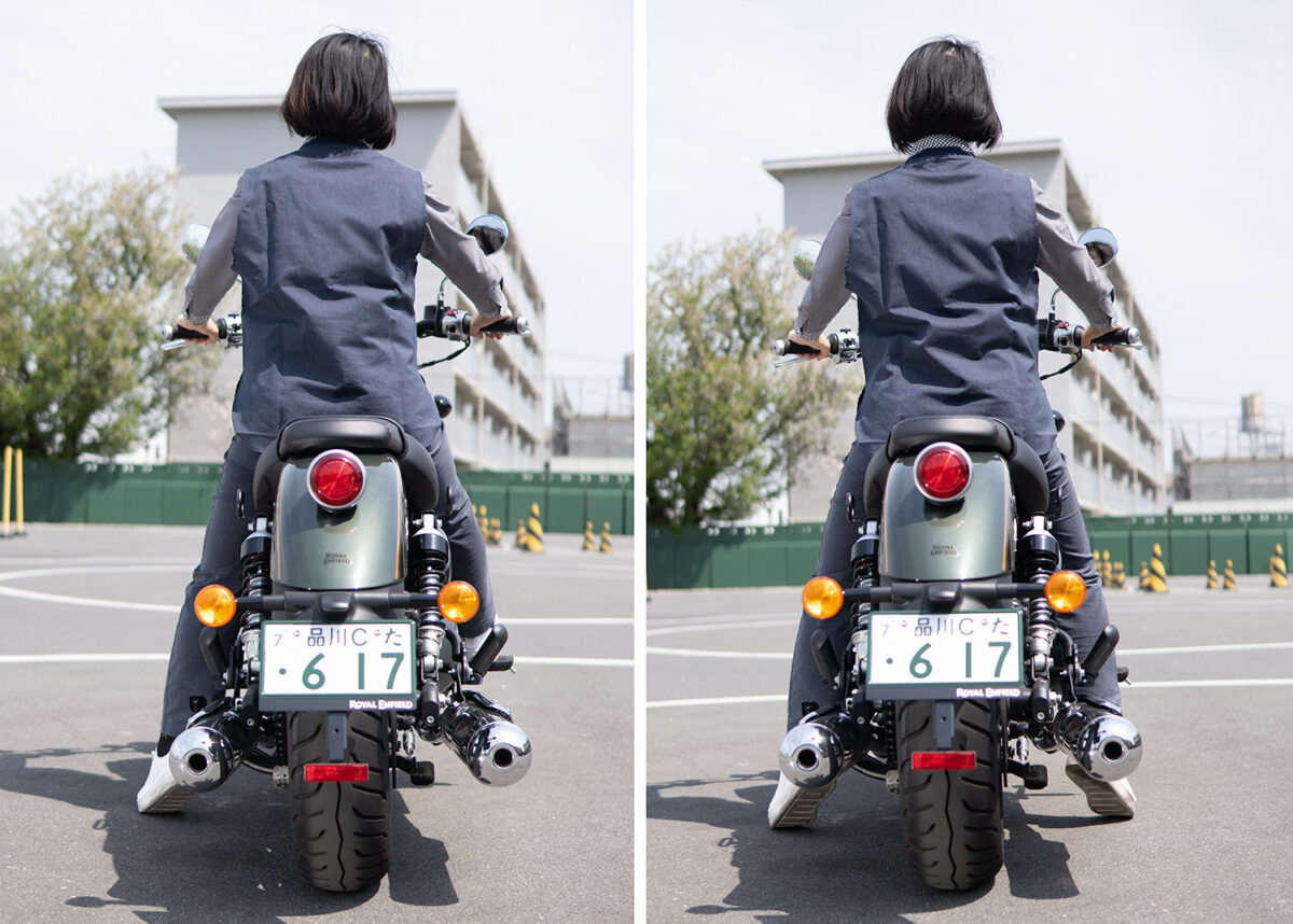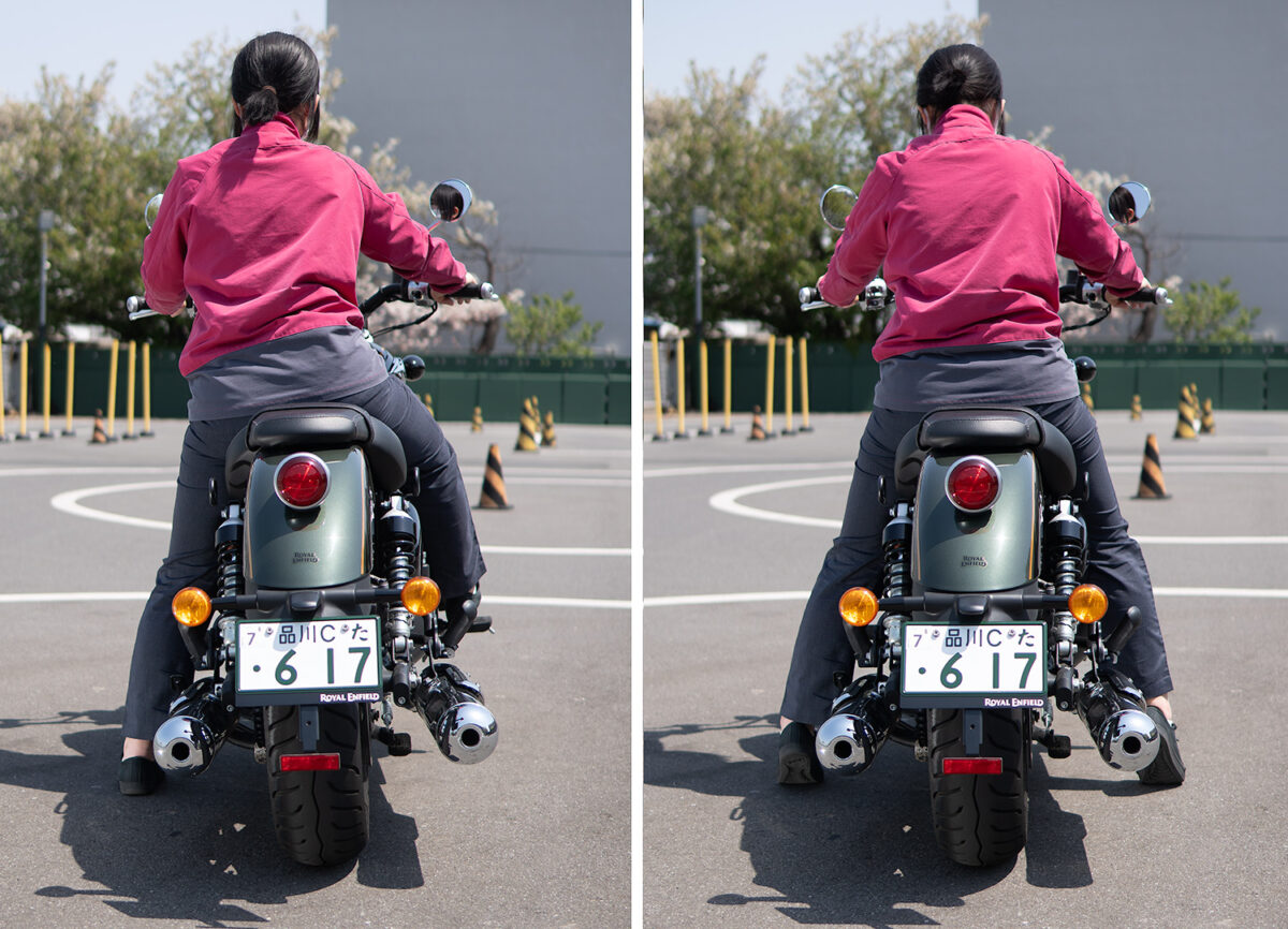 優さん跨りには不安はありません。後方確認など体勢を変えるのも問題ありません。でも、普通に座るとステップにも足が届かないので、足の置き場がなかったですね(笑)