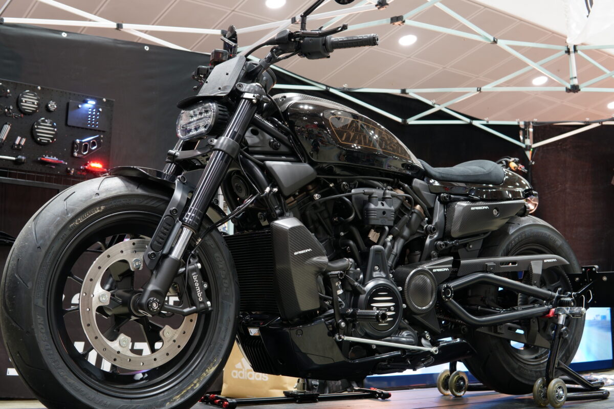 RH1250S スポーツスターS用のアルミ削り出しパーツや軽量高剛性のドライカーボンもラインナップする。