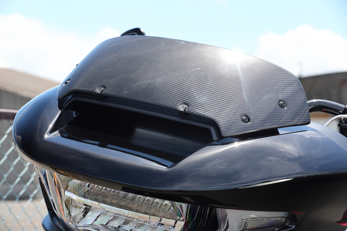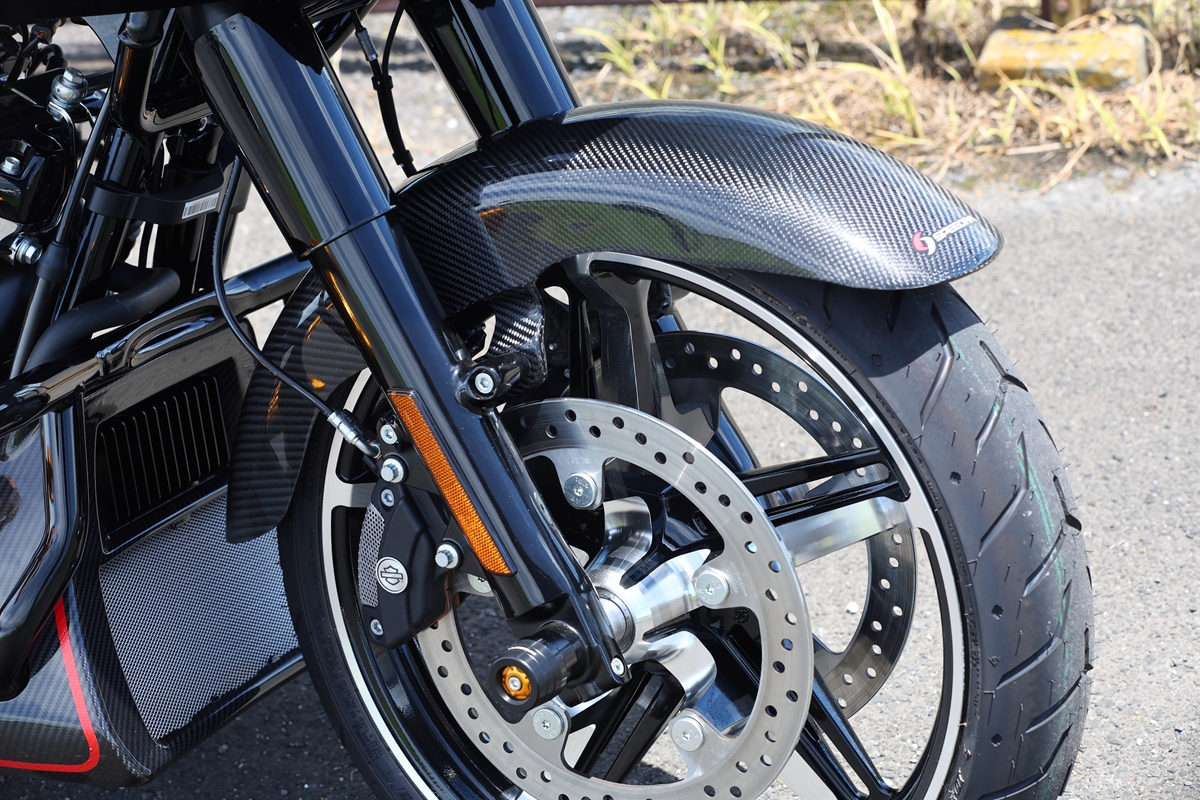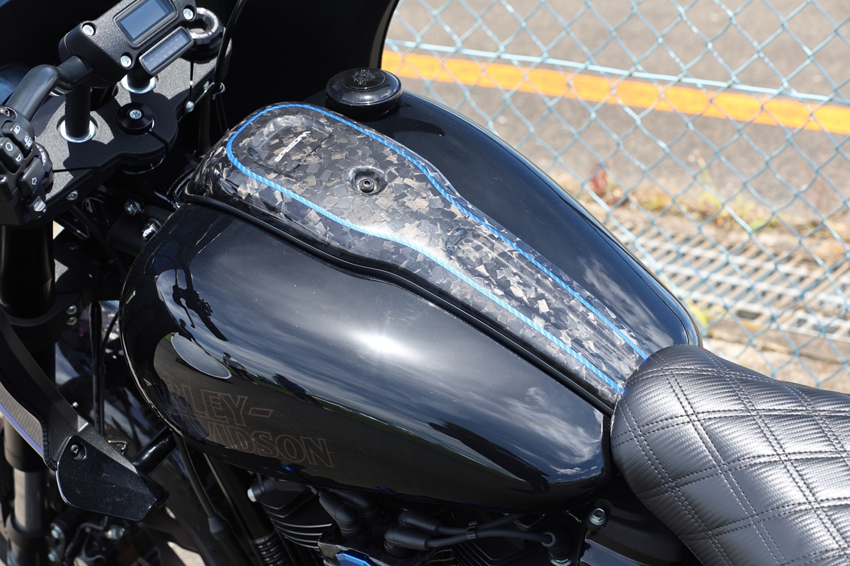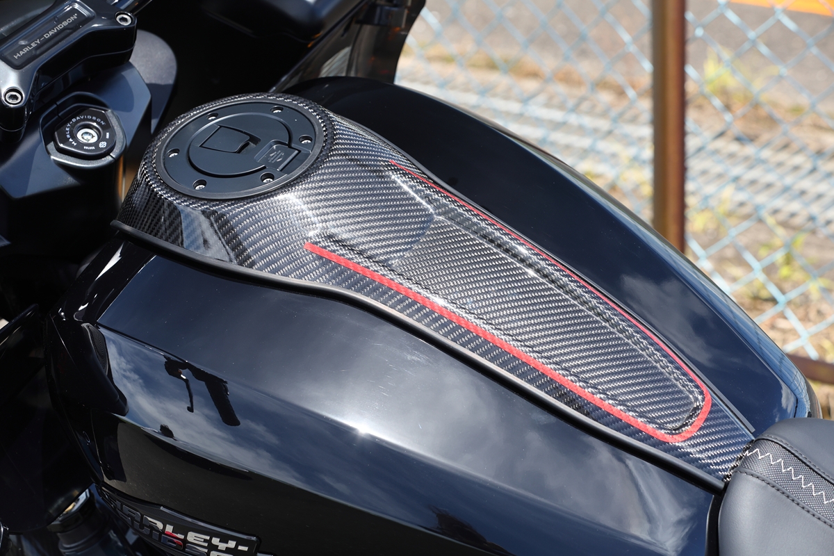 クラブスタイルの要素を取り入れた人気モデル〝ローライダーST〟。ローライダーSTは、FXRTスタイルの大型カウルが特徴的なモデルだが、今回はこの〝顔〟とも言えるカウルをドライカーボン製にアップグレード