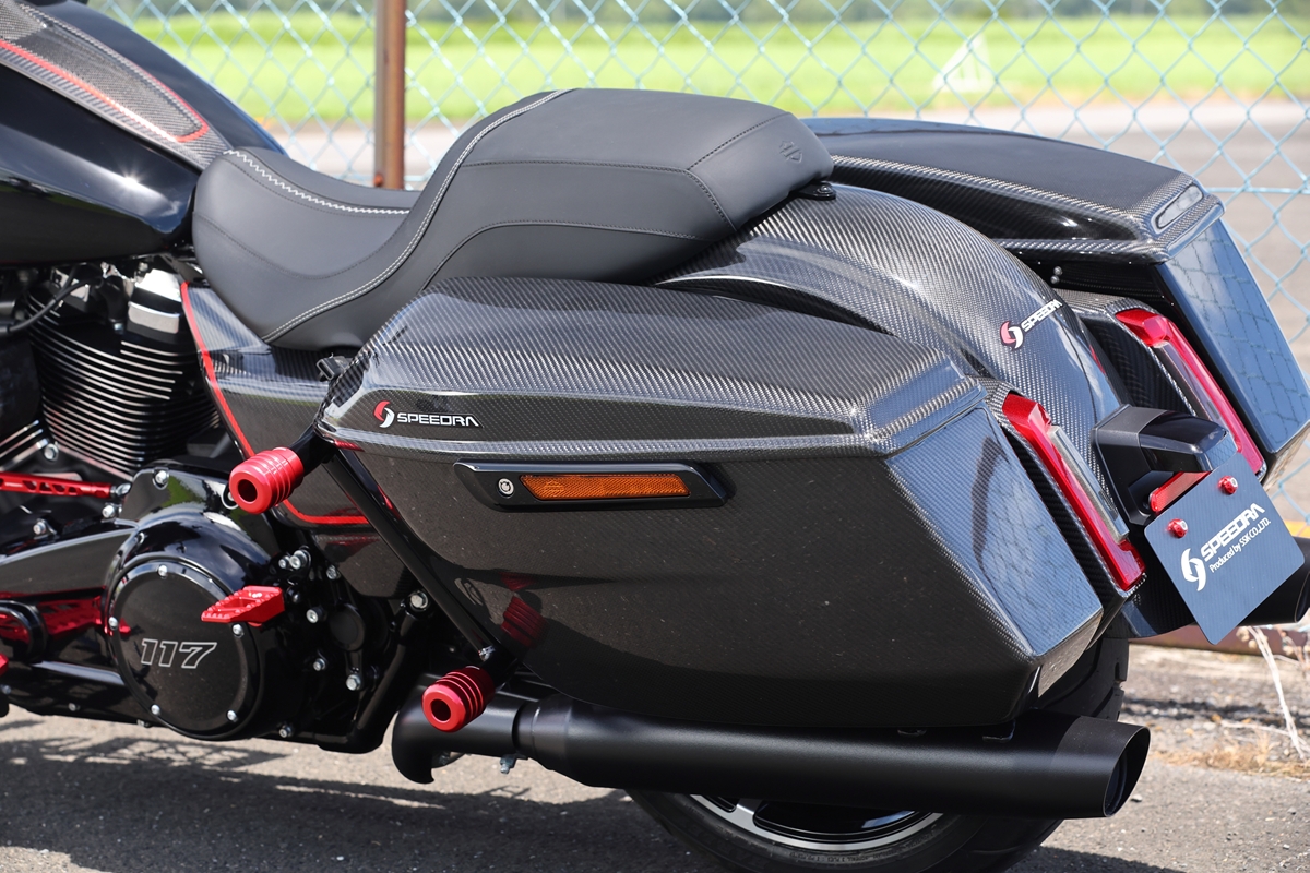 こうした流れの中で注目されているのが、車体の軽量化に貢献するカーボンパーツだ。その需要に応えるべく、SSKは自社ブランド「SPEEDRA(スピードラ)」でハーレー用のカスタムパーツをリリースしている。