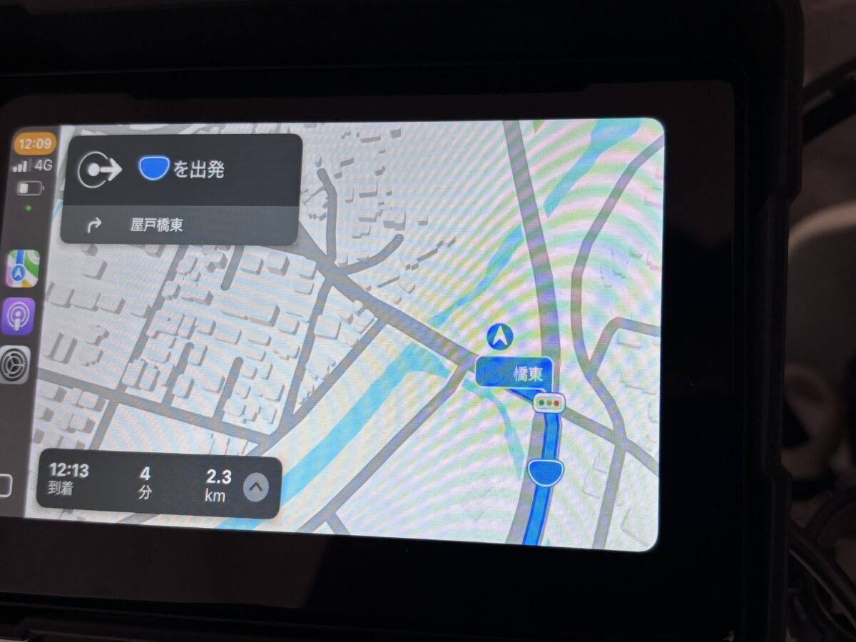 本体を車両左側に設置すると、ライダー側に現在地アイコンが寄るため、視線移動が少なく安全に確認できる