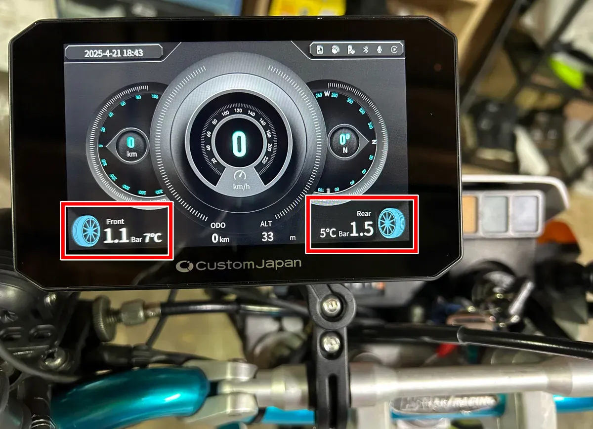 本製品に搭載されているタイヤ空気圧モニタリング機能は、あくまでライダー向けの安全補助を目的とした参考表示機能です。