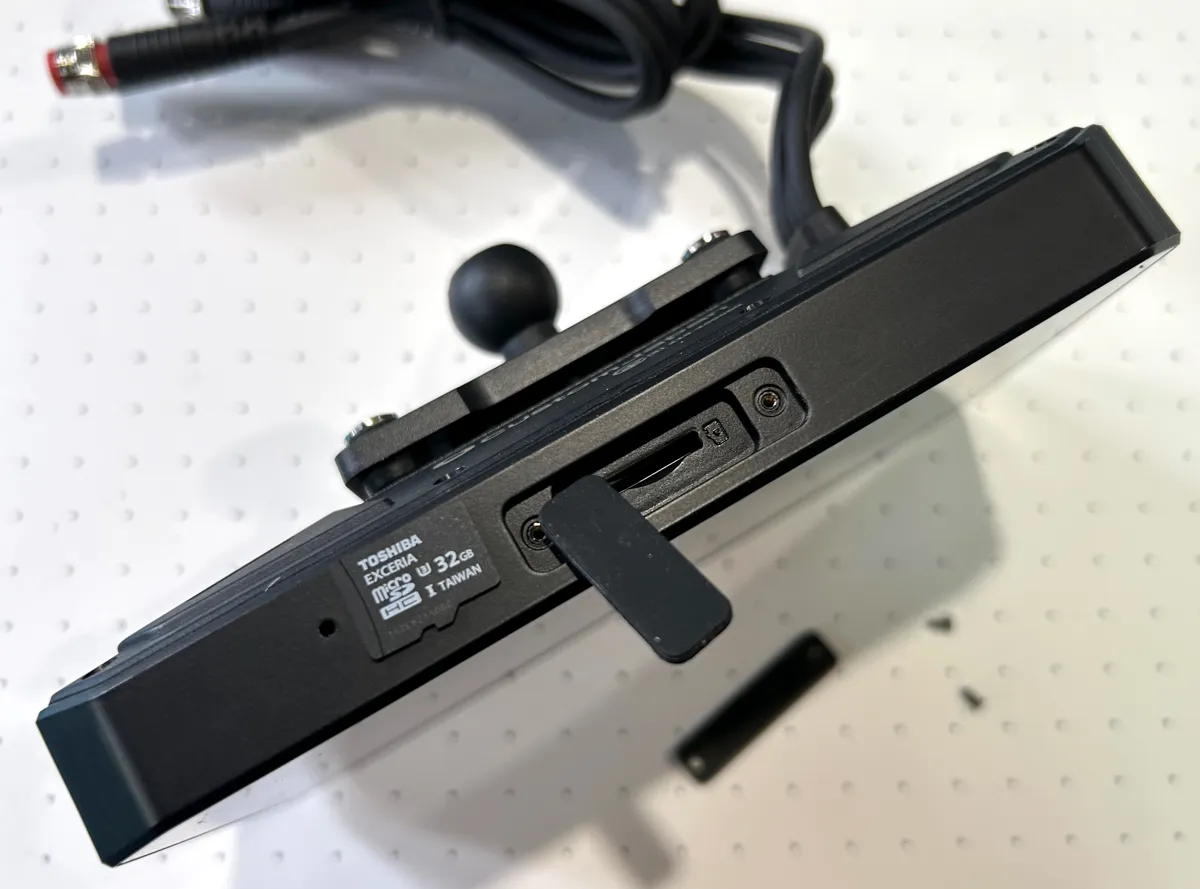 本体の構成としてはディスプレイと電源・前後カメラ用の接続用ケーブル、それから背後にハンドルマウントとの接続部、そして底面のカバーを付属の工具を使って開けるとMicroSDカードスロットが出てくる…という実にシンプルな構成です。