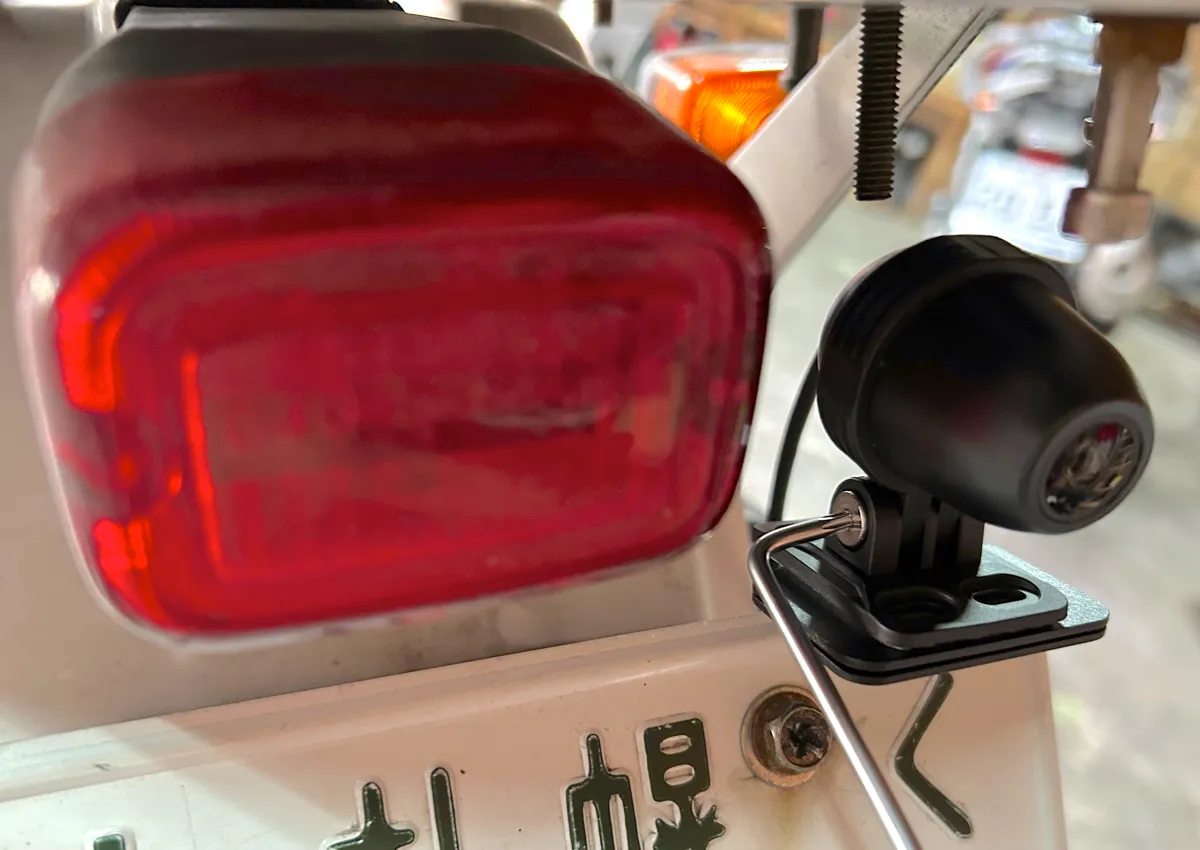 なお、カメラ設置後は両面テープなのでしばらく時間を置いて、実際に走り出す前にディスプレイで画角を確認しながら付属の工具で角度調整をしましょう。