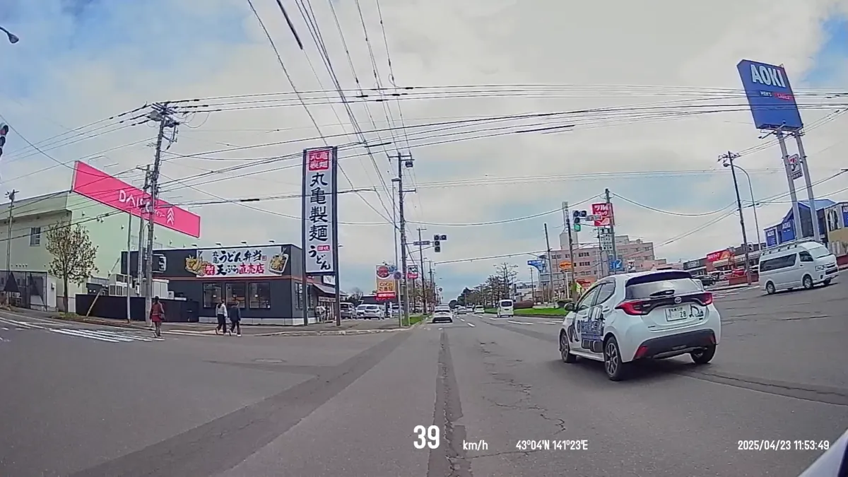 信号や標識、他車のナンバープレートがバッチリ(フロントカメラ)